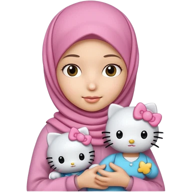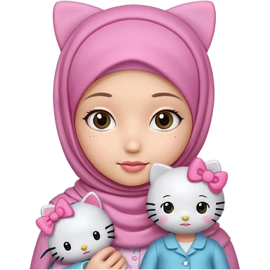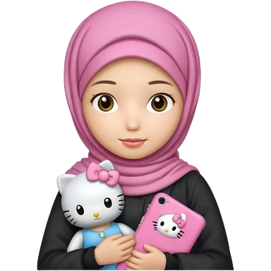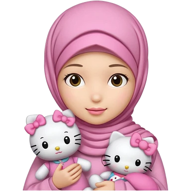 Teen girl wearing hijab and freshness with Hello Kitty doll emoji
