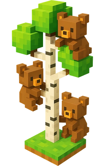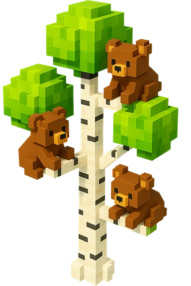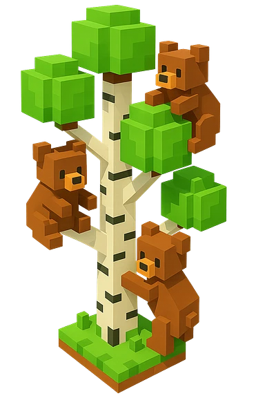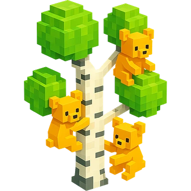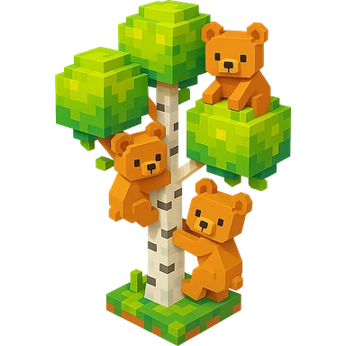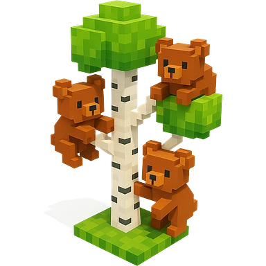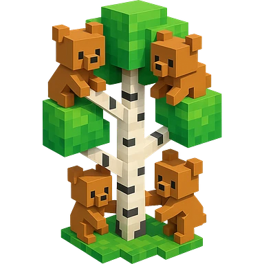 Сделай березу с тремя медвежатами на ней, no background emoji