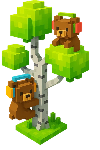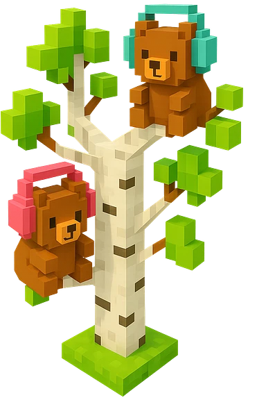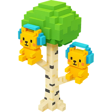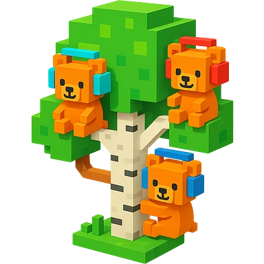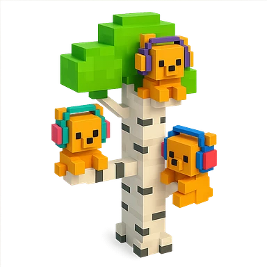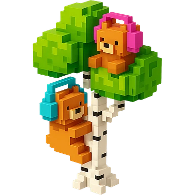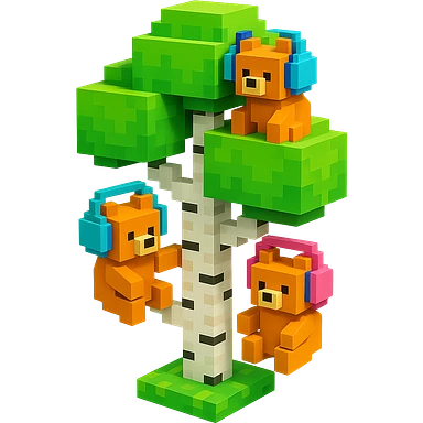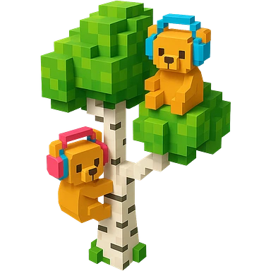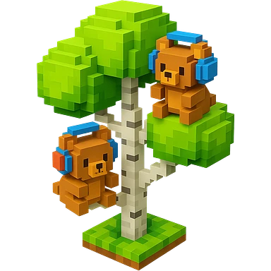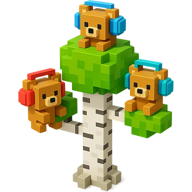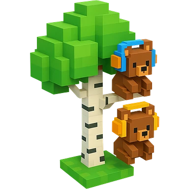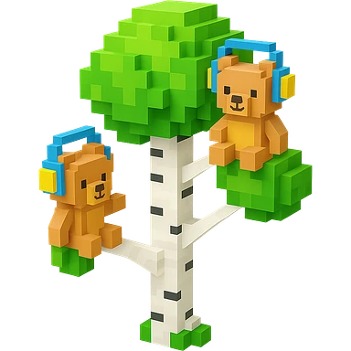 Сделай березу с двумя медвежатами в наушниках на ней, no background emoji