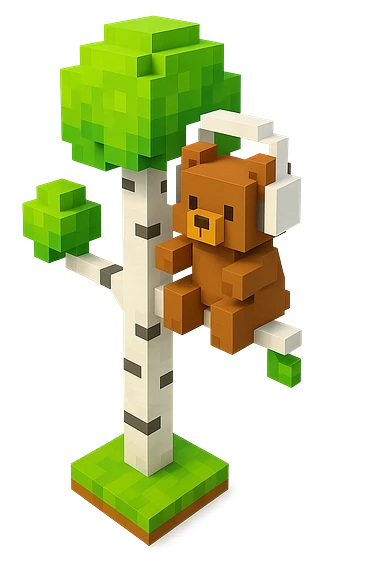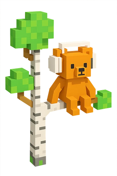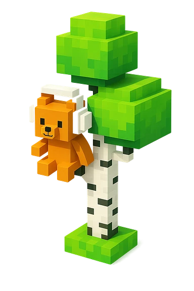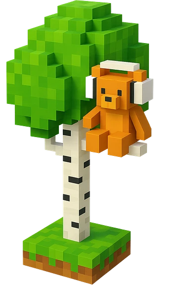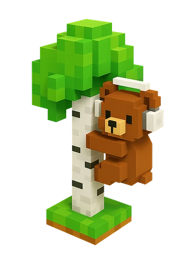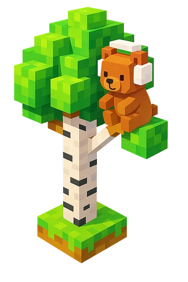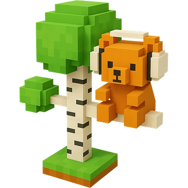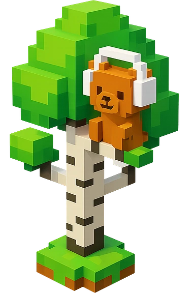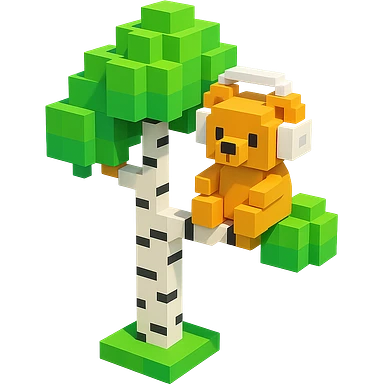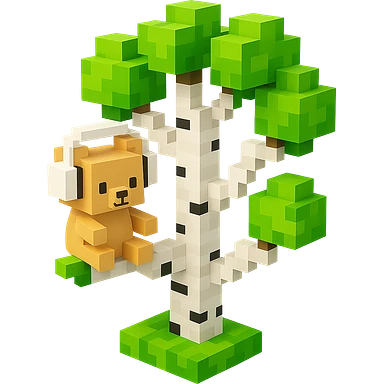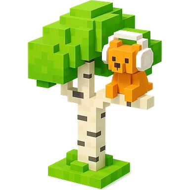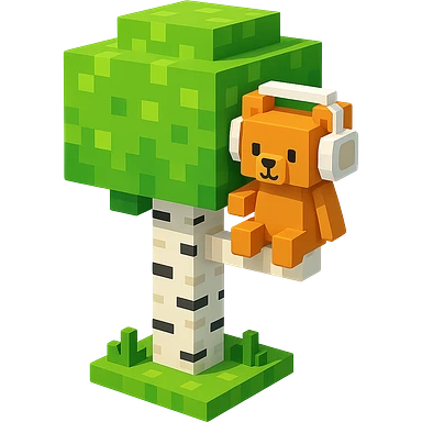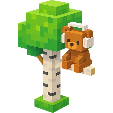 Сделай березу с медвежонком в белых наушниках на ней, no background emoji
