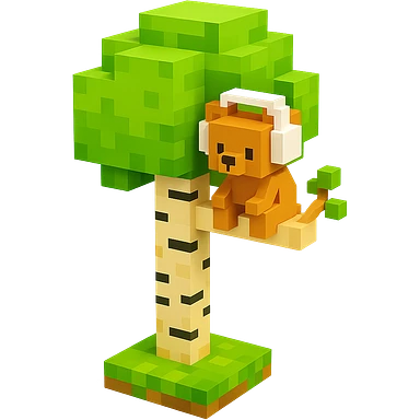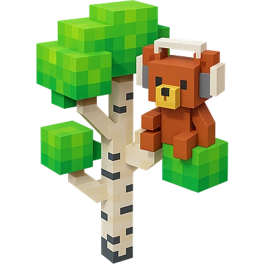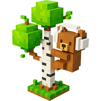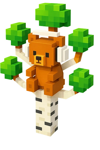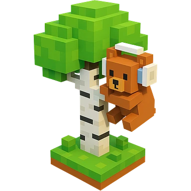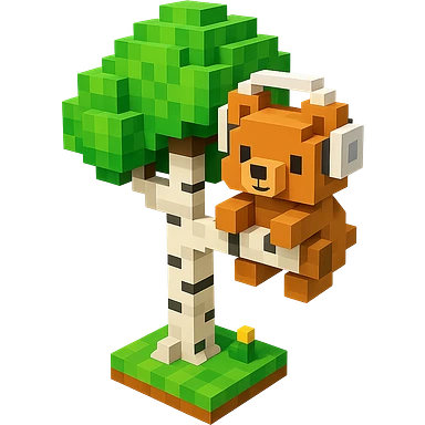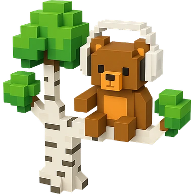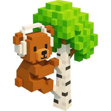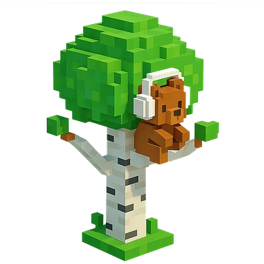 Сделай березу с бурым медвежонком в белых наушниках на ней, no background emoji