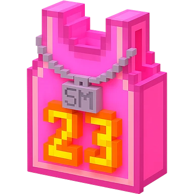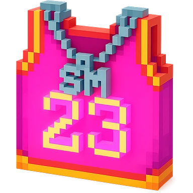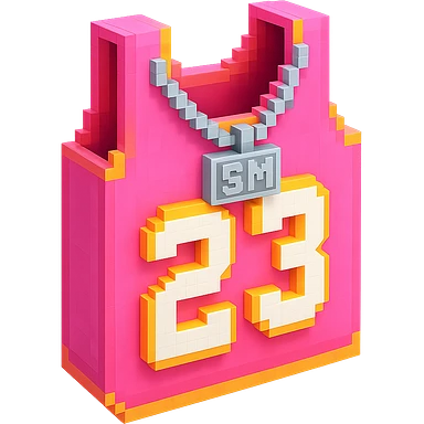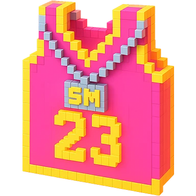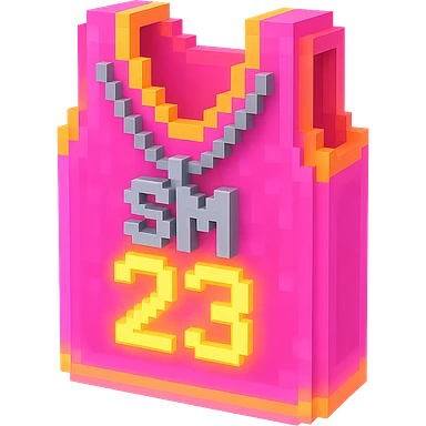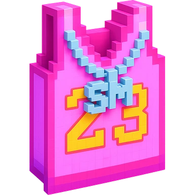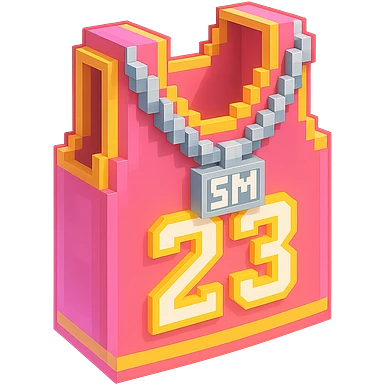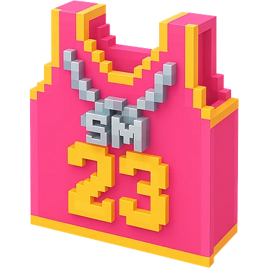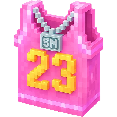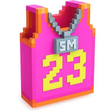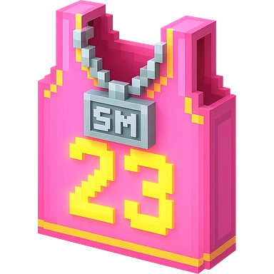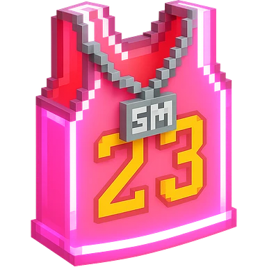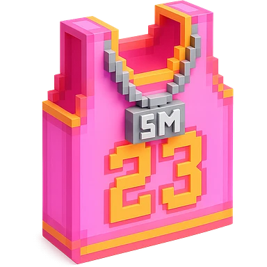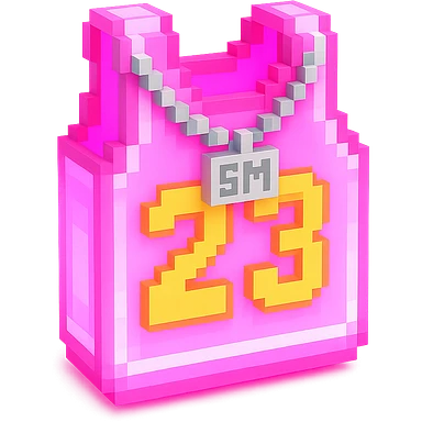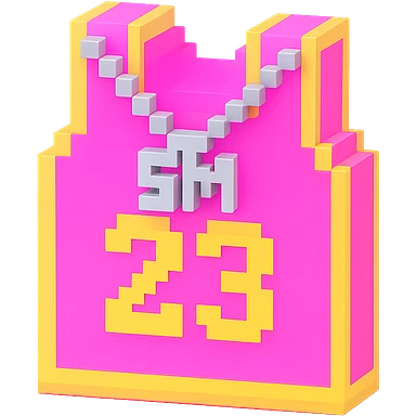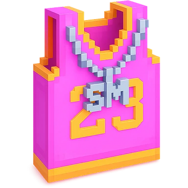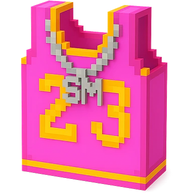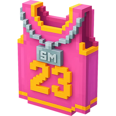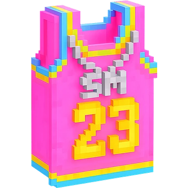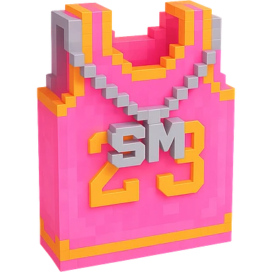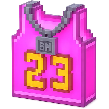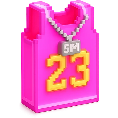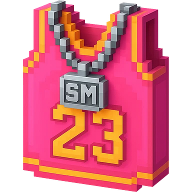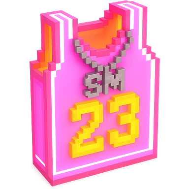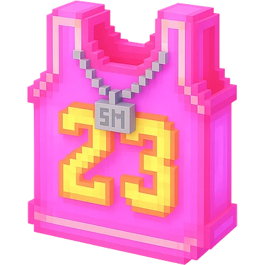 светящейся розовая баскетбольная майка с надписью "23" и серебряная цепь с надписью "SM", no background 3D illustration | AI Emoji Generator