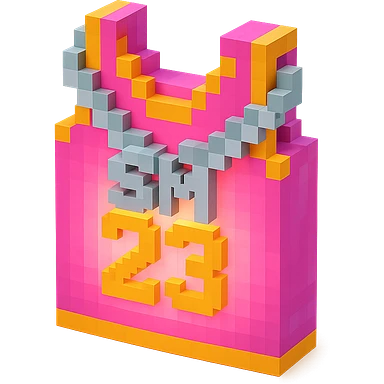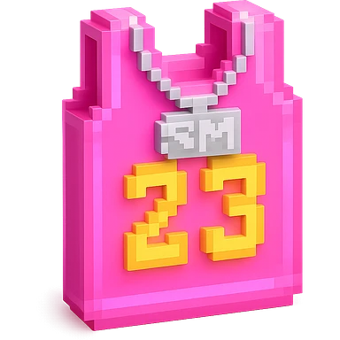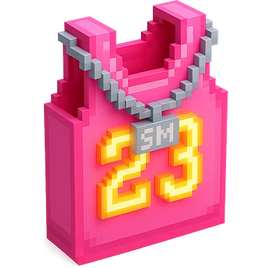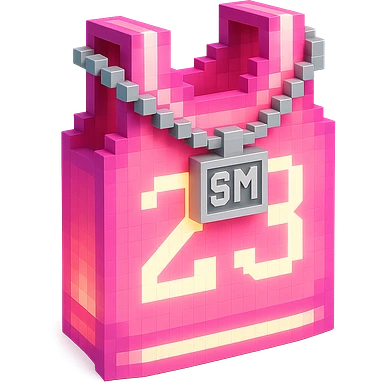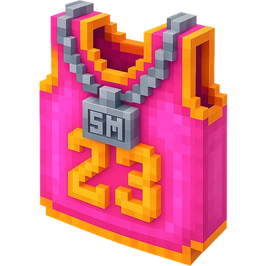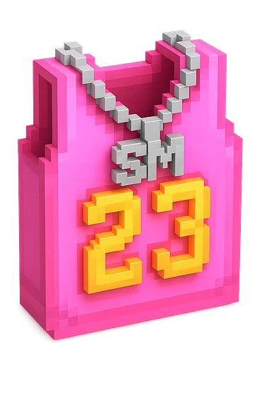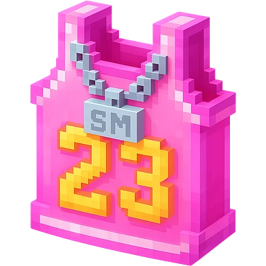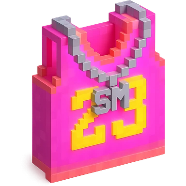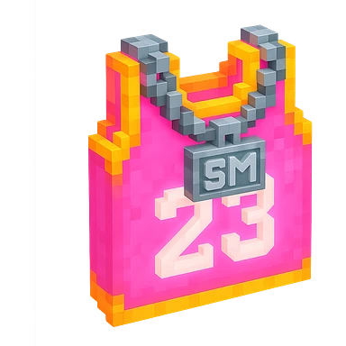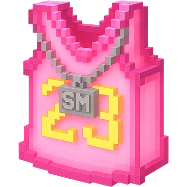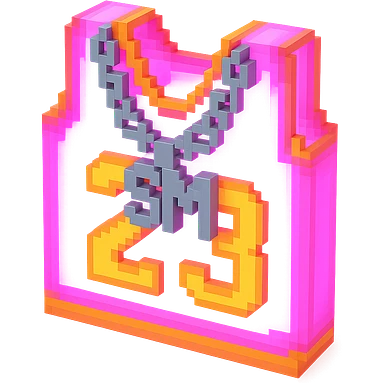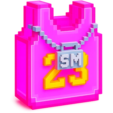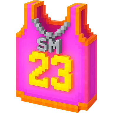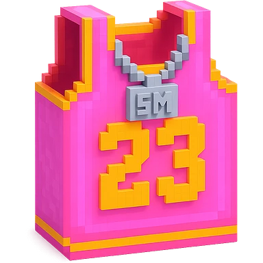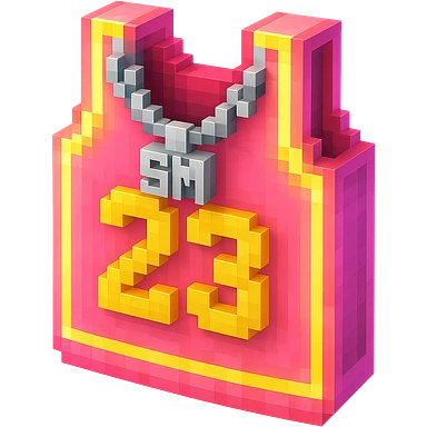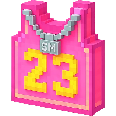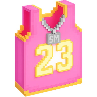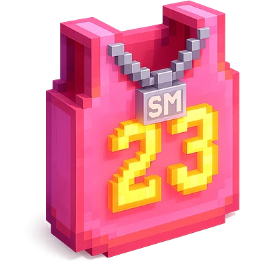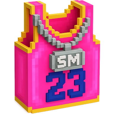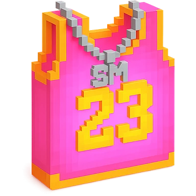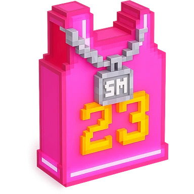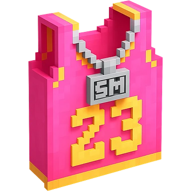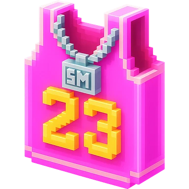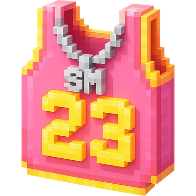 светящейся розовая баскетбольная майка с надписью "23" и серебряная цепь с надписью "SM", no background 3D illustration | AI Emoji Generator