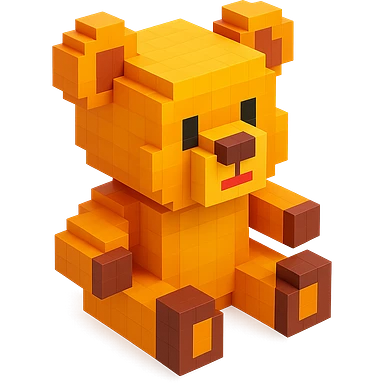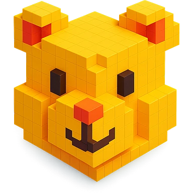 A grizzly bear with a chain and a money gun, voxel style, facing forward emoji