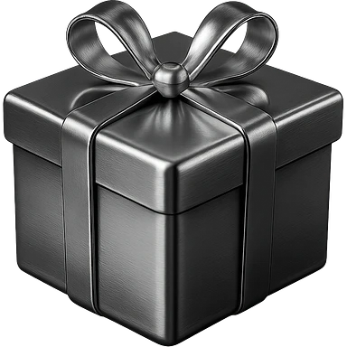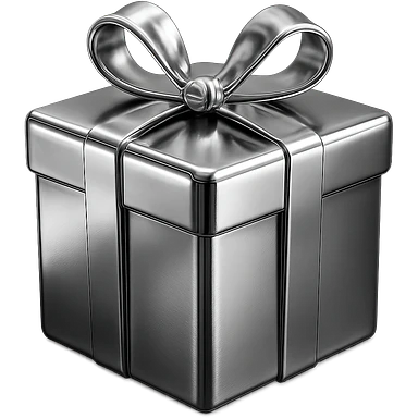 chrome style gift box with a metallic bow on top, highly reflective and polished 3D illustration | AI Emoji Generator