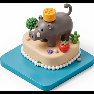Exterior view of a whimsical jungle farm with cookie-factory-style buildings nestled in lush vegetation, wheat fields and colorful vegetables growing from rich soil, surreal atmosphere, no robots, emoji-style emoji