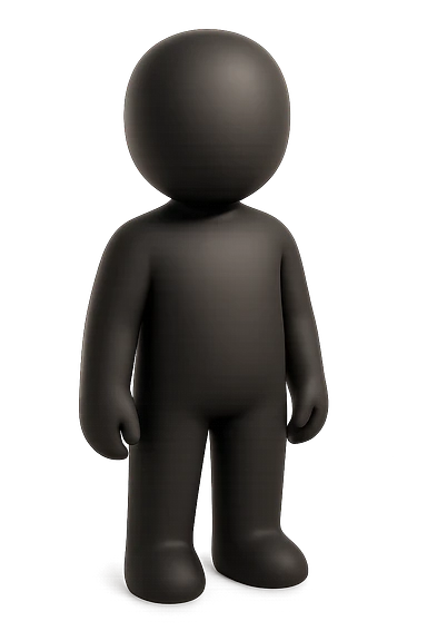 Matte black mannequin in the style of a default avatar. Monochrome with no lines.