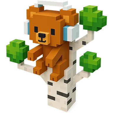 Сделай березу с бурым медвежонком в белых наушниках на ней, no background 3D illustration | AI Emoji Generator