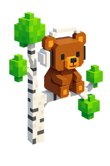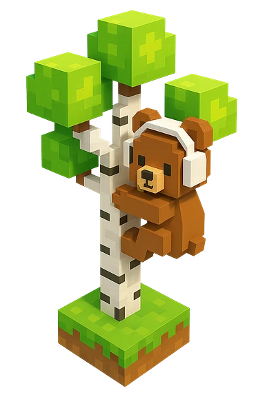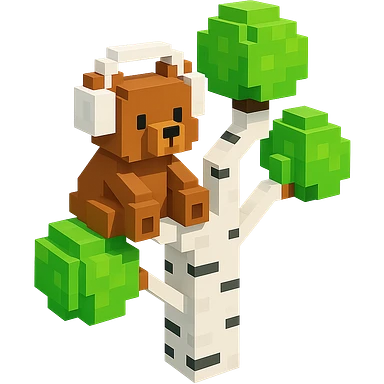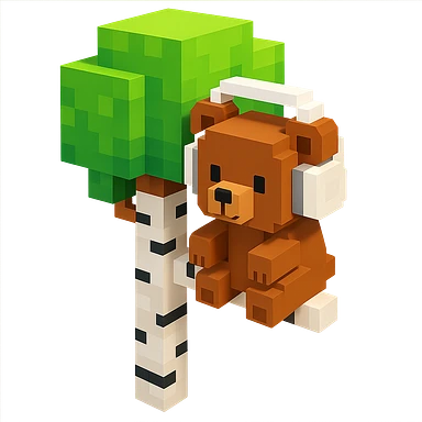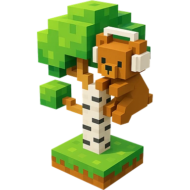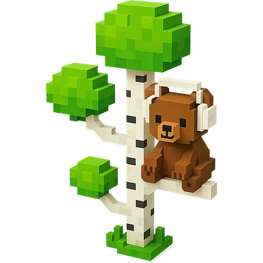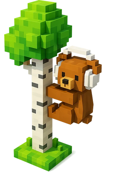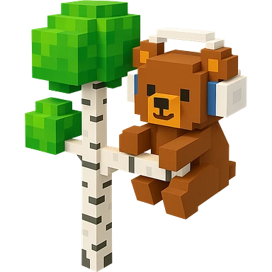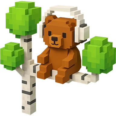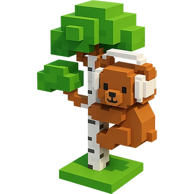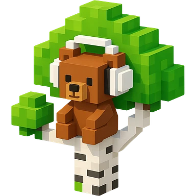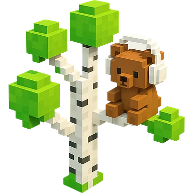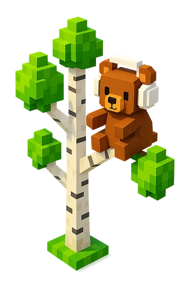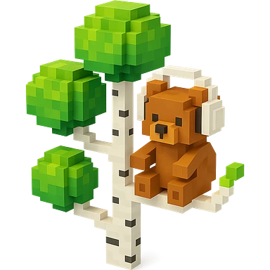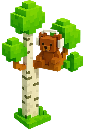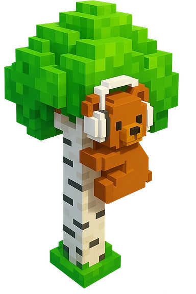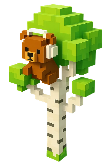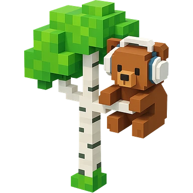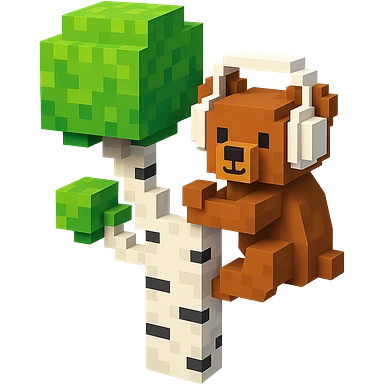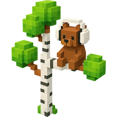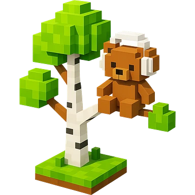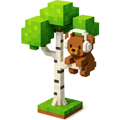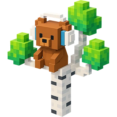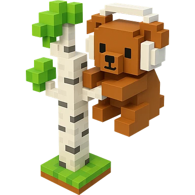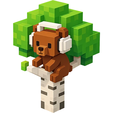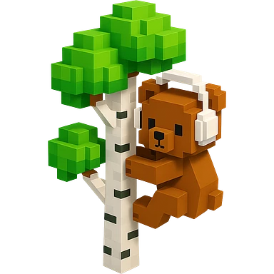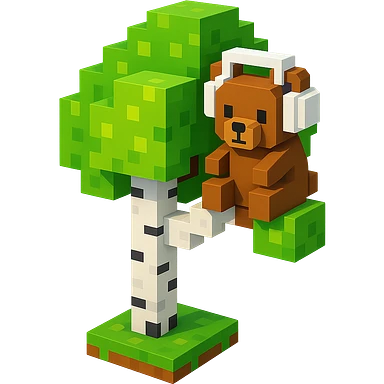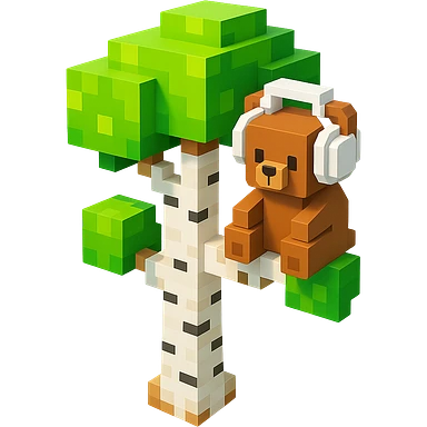 Сделай березу с медвежонком в белых наушниках на ней, no background 3D illustration | AI Emoji Generator