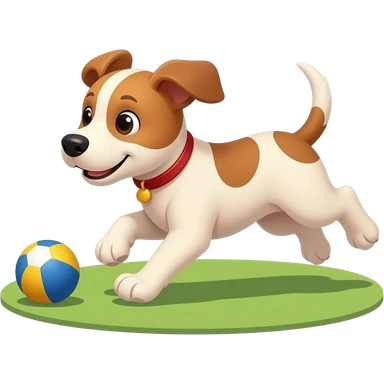 Drawing of an active puppy. He runs on all fours while rolling a ball on the playground. emoji