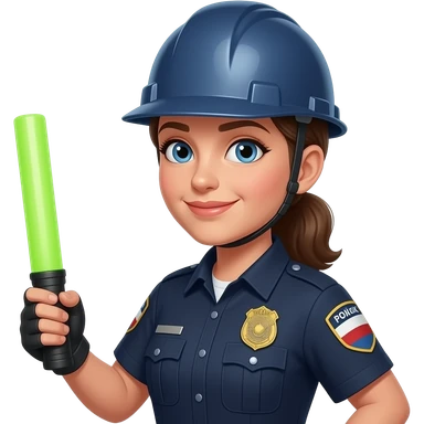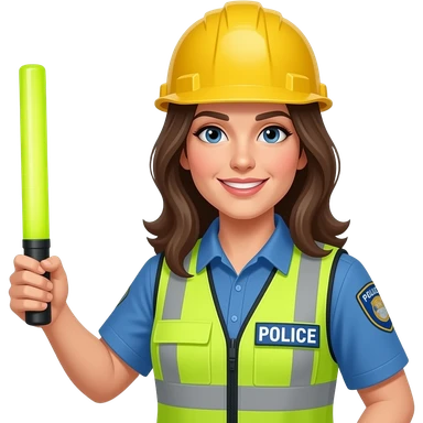 뭔가 공사장에서 일하는 것처럼 안전모를 쓰고 있고 형광봉을 들고 있는 공연장 안전 관리인 여자 emoji