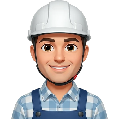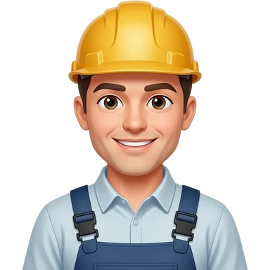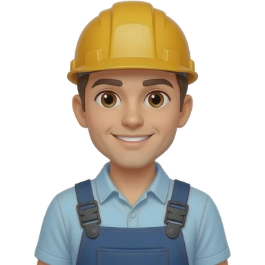 자영업자 살짝 미소 작업복 입고 헬멧은 안 쓴 젊은 남자 emoji