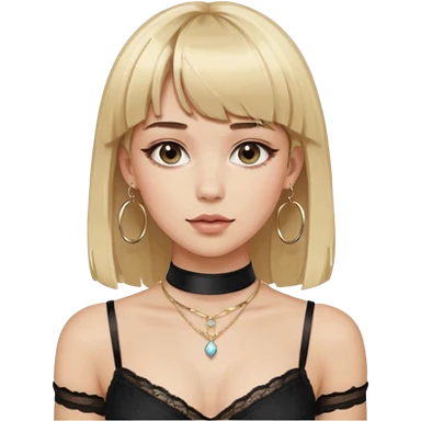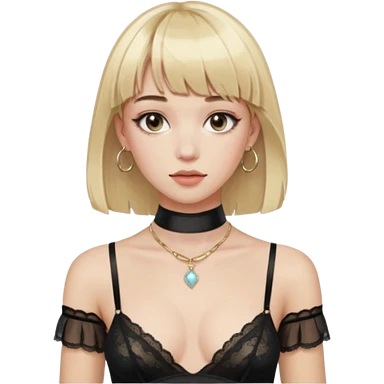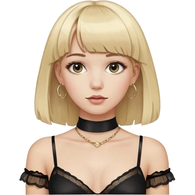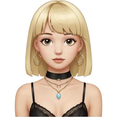 long elegant hair with bangs. almost female blonde boy femboy trap t-girl cute feminine makeup gay lingerie sleeves. skinny male body. choker hoop earrings. emoji