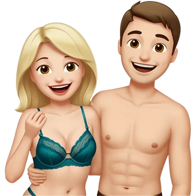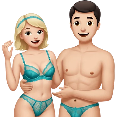 male getting sissified in lingerie by his smug wife. the wife is crying with laughter emoji