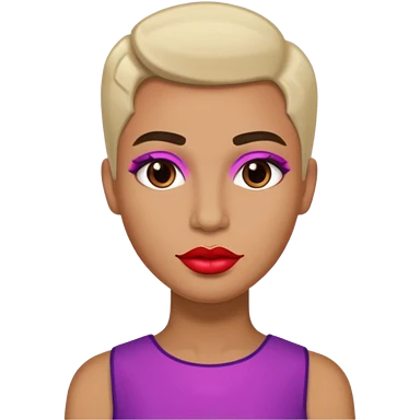 blonde having crying emoji tears from hard laughter. really happy in general, happy eyes. red lipstick emoji