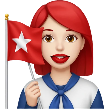 brunette girl with cat ears and doing cat pose with gay flag in mouth emoji
