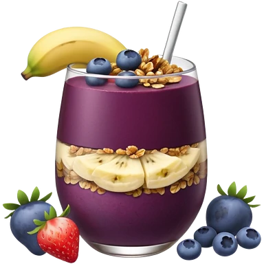 Vaso con açai, que lleve granola plátano arándanos y frutillas emoji