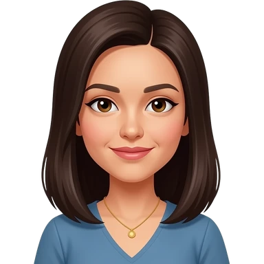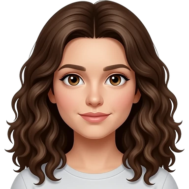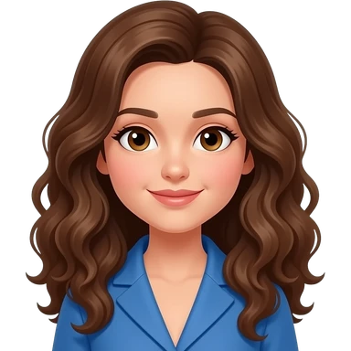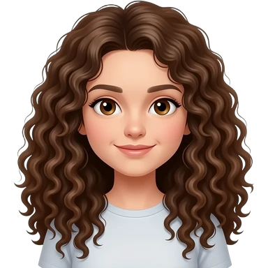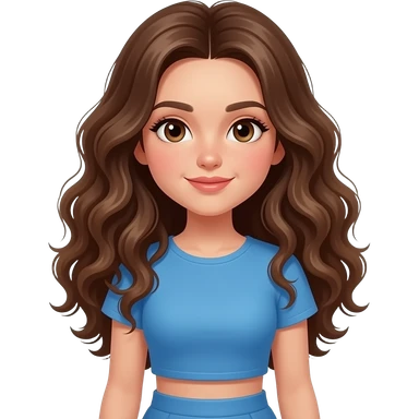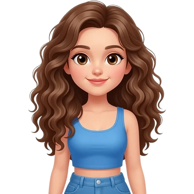 Make a girl within a crop top that is blue in a blue outfit with real long curly brown hair with brown eyes emoji