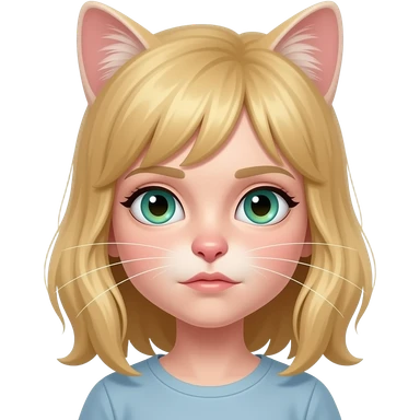 Dirty blonde girl with green eyes that are kind of blue that is autistic with a cat emoji