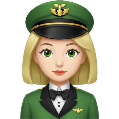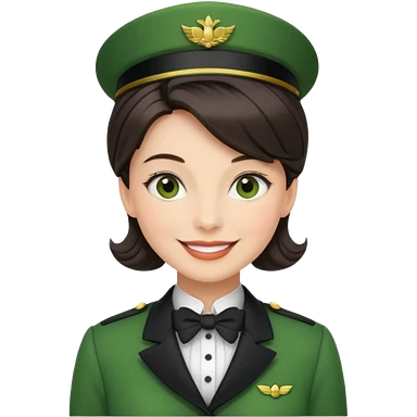 Lady hotel butler with green uniform black hair and just a lite bit brown skin and Arabic face with our hat please emoji