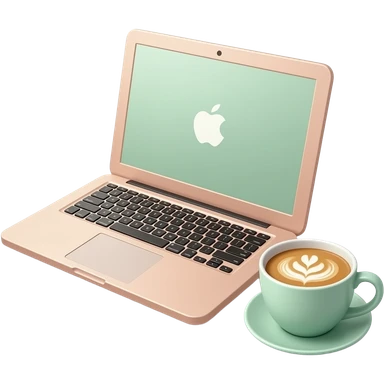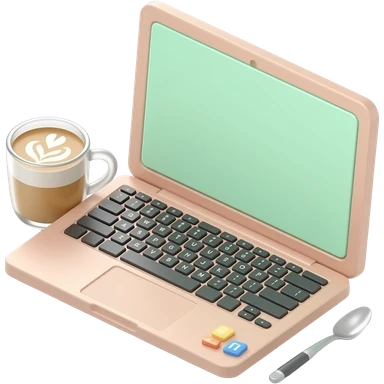 apple emoji style,laptop with latte setup, soft lighting, aesthetic, minimal, glossy 3d, clean girl aesthetic, pastel pink beige and light green colour palette, high detail, soft shadows emoji