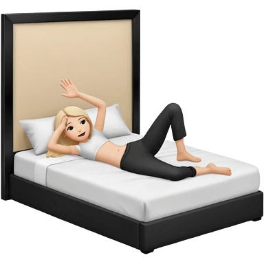 A bed with a girl laying down and a man putting his hand up. emoji