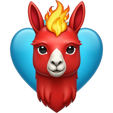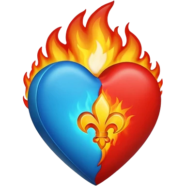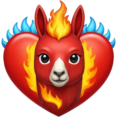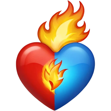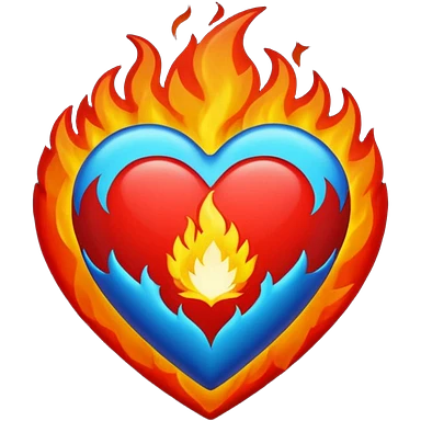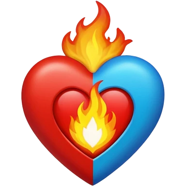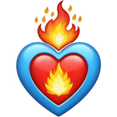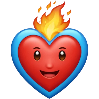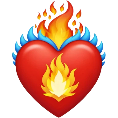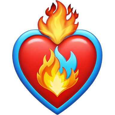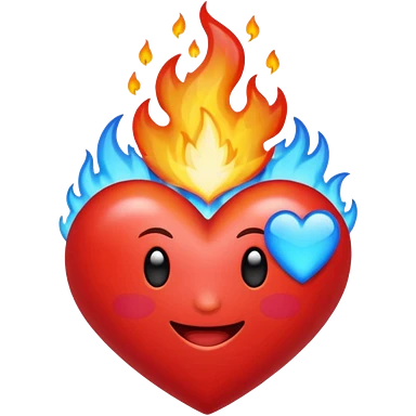 Hazme el corazón rojo y con fuego y que la llama sea azul verdoso emoji