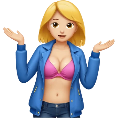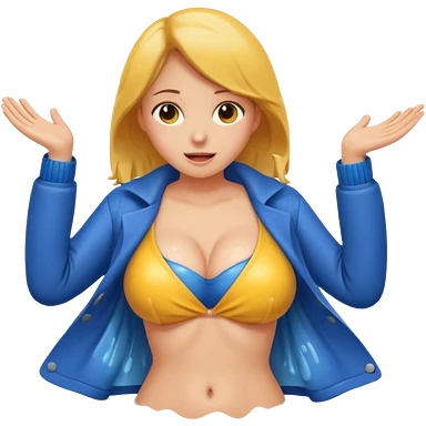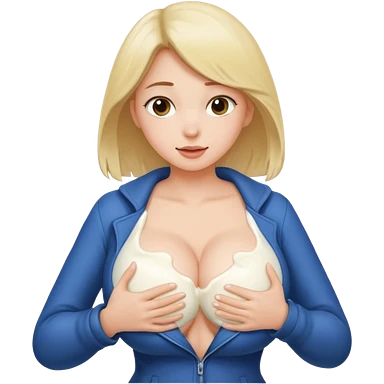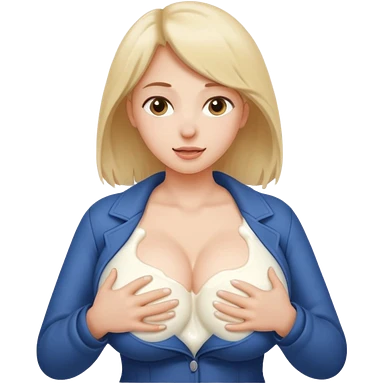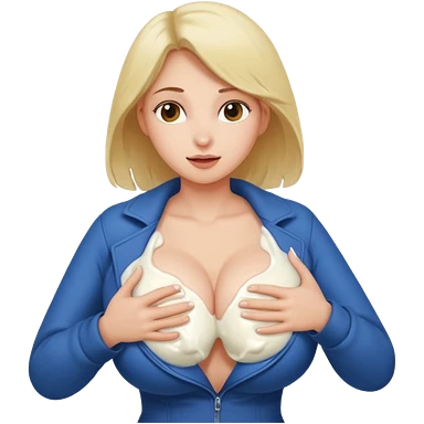 A girl taking off her coat and squishing her big breasts and white milk comes out of her big emoji