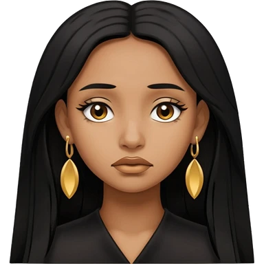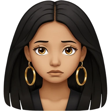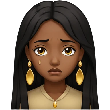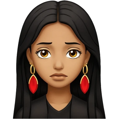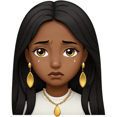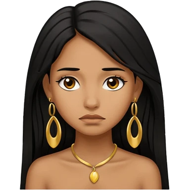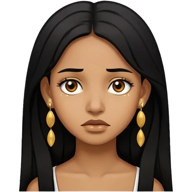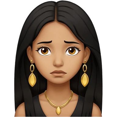 brown girl who has long layered black hair with gold earrings who is sad emoji