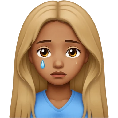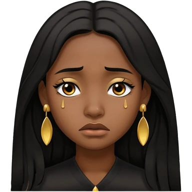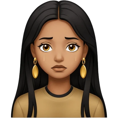 medium brown skin tone girl who has long layered black hair with gold stud earrings who is sad emoji
