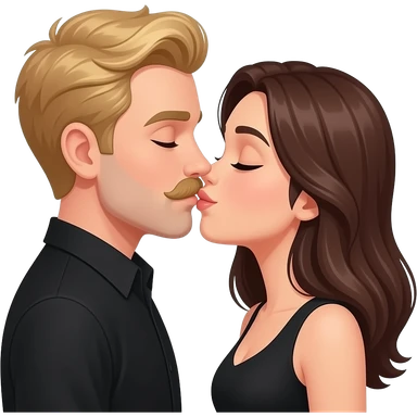 Blond man with a moustache kiss his brunette wife. Both dressing in black emoji