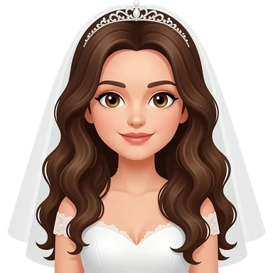 Long brown wavy hair, hazel eyed girl wedding emoji