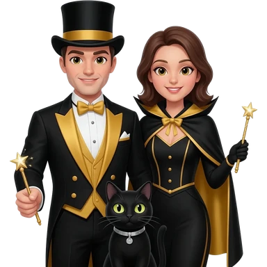 magician couple and their pet cat emoji