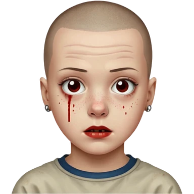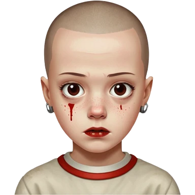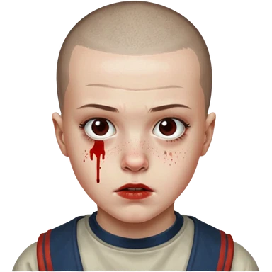 Eleven from stranger things season one buz cut and bloody nose emoji