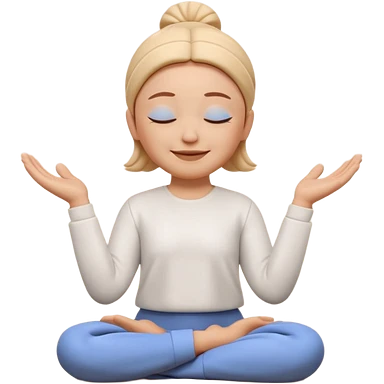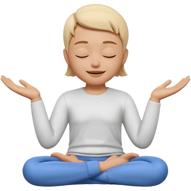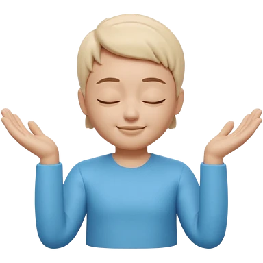 Apple Memoji style 3D character, male/female, eyes closed with a peaceful serene smile, hands making a 'zen' or 'relax' gesture, soft studio lighting, high resolution, 4k, octane render, clean 3D clay texture, vibrant colors, isolated on a plain white background." emoji