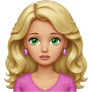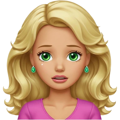 sad Barbie with blonde wavy hair green eyes and tan skin emoji
