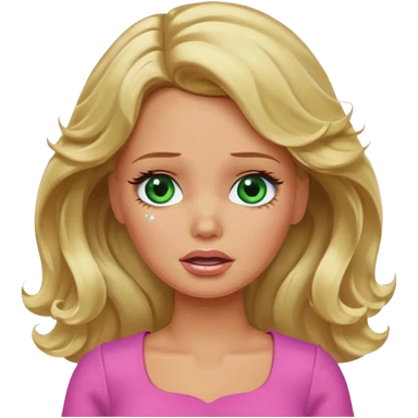 crying Barbie with blonde wavy hair green eyes and tan skin emoji