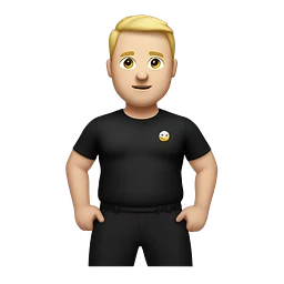 white fat man in sports black pants and black t-shirt, short hair emoji