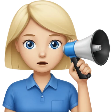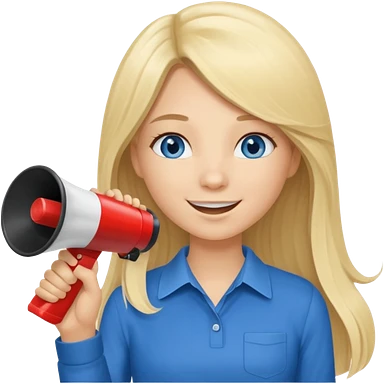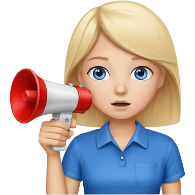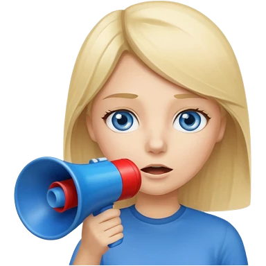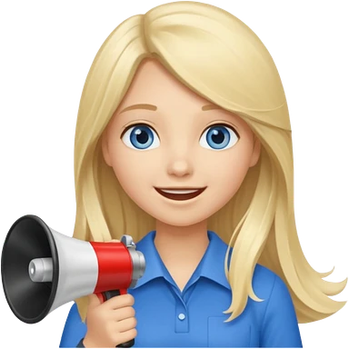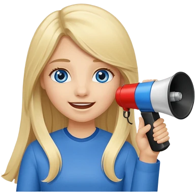 blue eyes blonde girl yelling into megaphone smiling long hair emoji