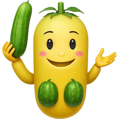 Android smiley face yellow body holding a cucumber upwards by his yellow hand emoji