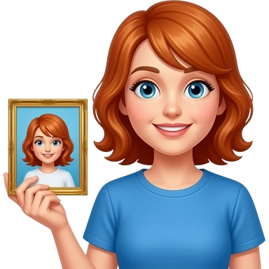 baju biru rambut merah perempuan mainan emoji