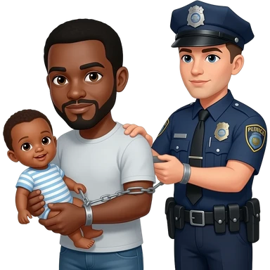 Police arresting a black guy holding baby pil emoji