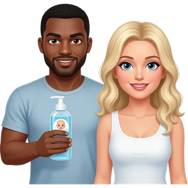 Jacked black guy holding baby oil with a pretty white girl emoji