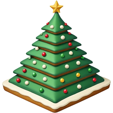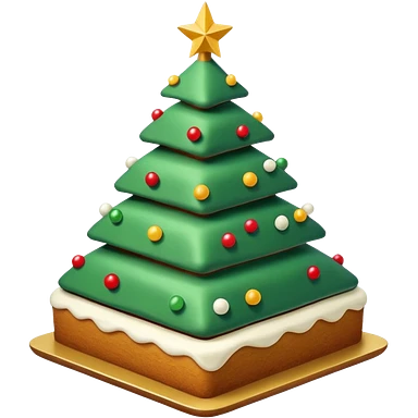 flat cake that looks like christmas tree, it is whole layered with white cream and has sharp corners emoji