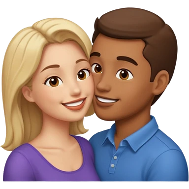Loving couple kissing, Love, hearts. Woman brown hair, man is bald emoji