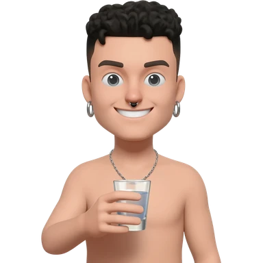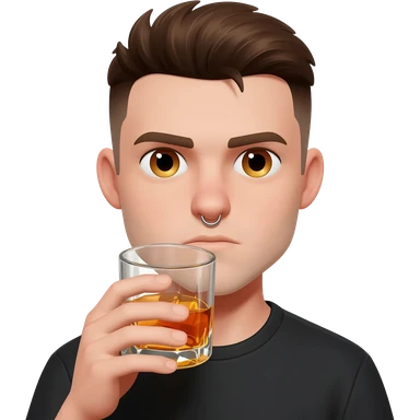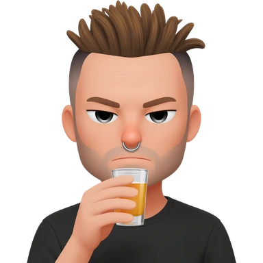 a brown hair guy with septum and earings with a smile drinking a shot emoji