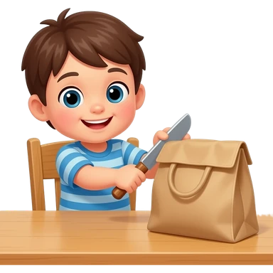 child banging bag on table emoji