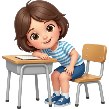 child next to desk in class emoji