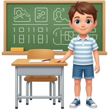 child standing up next to desk in class emoji