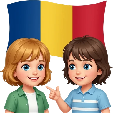 two talking children Romania flag emoji